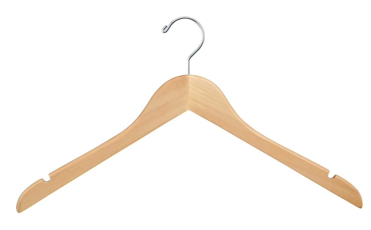 • FLAT WOOD FINISH • CHROME SWIVEL HOOK • NOTCHED SHOULDER