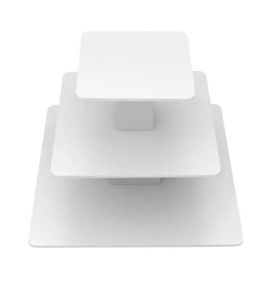 • DURABLE MELAMINE LAMINATE SURFACE • SQUARE with 2″ RADIUS CORNERS • TOP TIER : 24″ x 24″ • MIDDLE TIER : 36″ x 36″ • BOTTOM TIER : 48″ x 48″ • 1 1/2 INCH IN THICKNESS