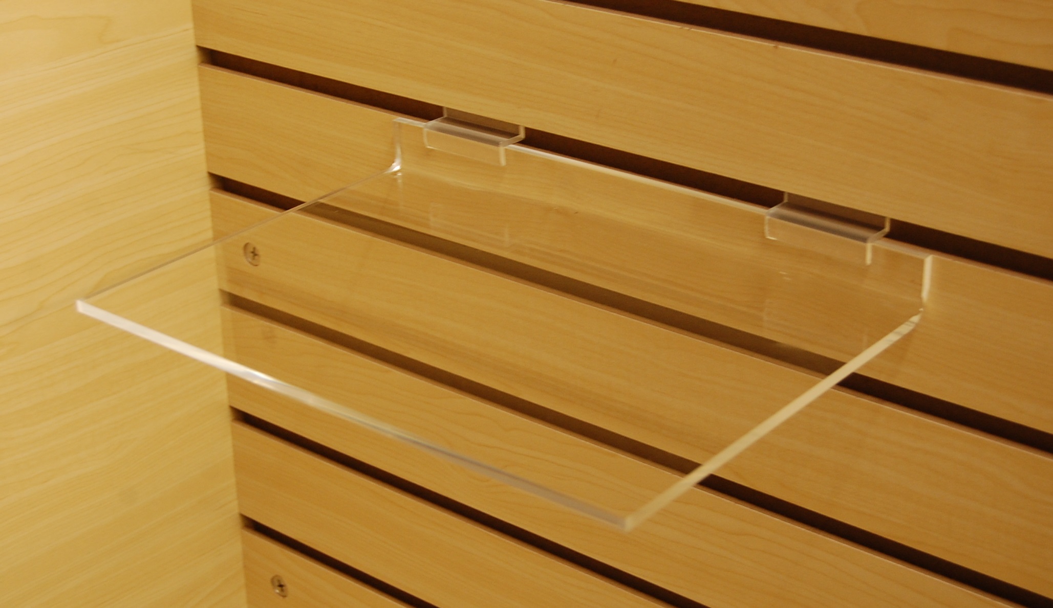 ACRYLIC SLATWALL SHELF 12″W X 8″D