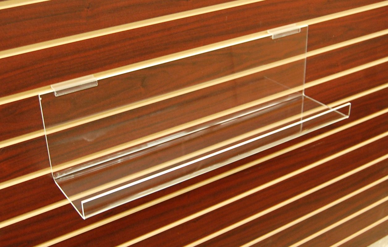 ACRYLIC SLATWALL TRAY 16” X 8″D X 2”H