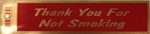 “THANK YOU FOR NOT SMOKING” • 2″ X 8″ SIGN WITH ADHESIVE BACK • FOR USE WITH FLAT SURFACES • COLOR RED/GOLD