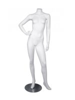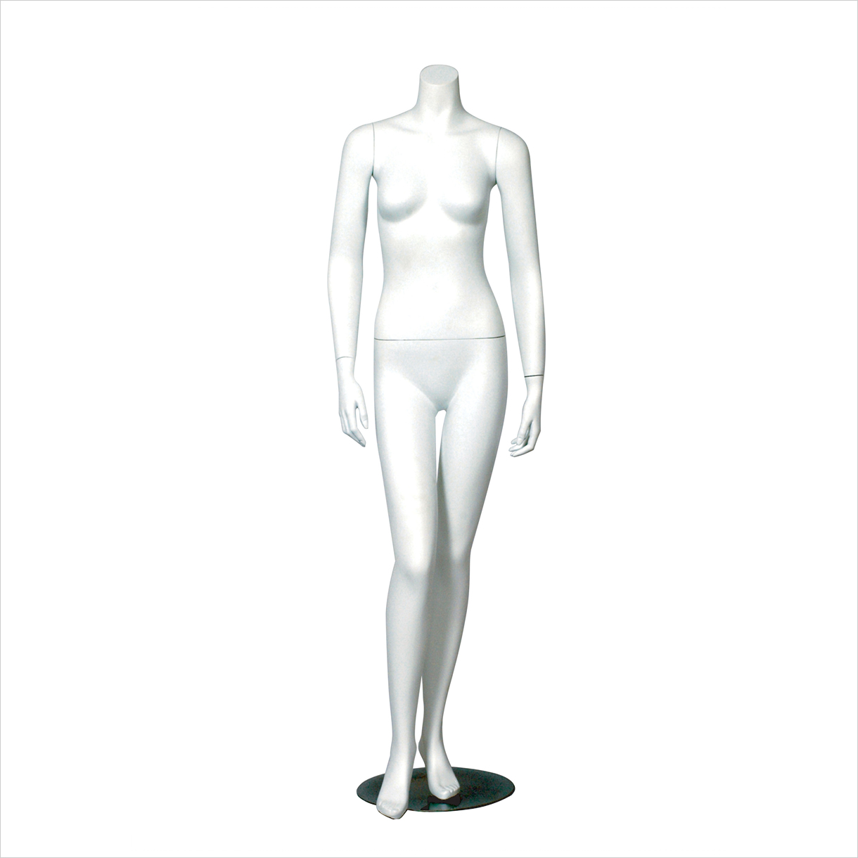 • HEADLESS FEMALE MANNEQUIN • HANDS DOWN AT SIDE • HEIGHT: 5′ 2″ • SHOULDER: 15 3/4″ • CHEST: 32 1/2″ • WAIST: 23 1/2″ • HIP: 34 1/4″ • COLOR WHITE