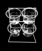 • 4 PLASTIC SMALL PRODUCT JARS • METAL WIRE FRAME • COLOR WHITE