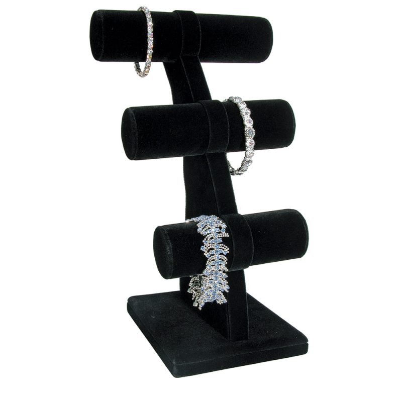 • NECKLACE/BRACELET BAR • FABRIC COVER • 14 3/4″ X 16″ • OFF SET BARS • COLOR BLACK