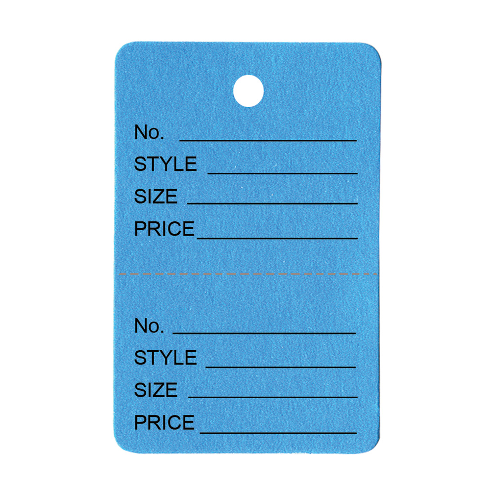 • UNSTRUNG TAG • TEXT- NO., STYLE, SIZE, AND PRICE • COLOR BLUE • 2 7/8″ X 1 3/4″ SIZE • CASE OF 1000 TAGS