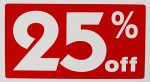 • “25% OFF” • 7″ X 11″ PLASTIC RETAIL SIGN • RED AND WHITE COLORS
