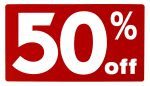 • “50% OFF” • 7″ X 11″ PLASTIC RETAIL SIGN • RED AND WHITE COLORS