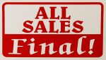 • “ALL SALES FINAL!” • 7″ X 11″ PLASTIC RETAIL SIGN • RED AND WHITE COLORS