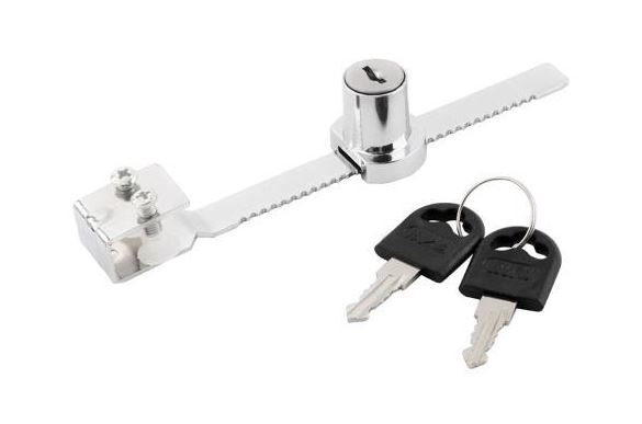 • ADHESIVE SHOWCASE LOCK • FOR USE WITH SLIDING SHOWCASE DOORS • ADHESIVE BACK TRACK WITH BOLT-LOCK • COLOR SILVER