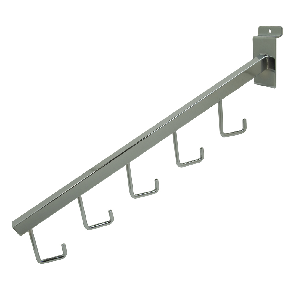 SLATWALL DOWN SLANT DISPLAY ARM WITH 5 HOOKS, CHROME