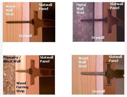 Insert drywall screws in the groove of each slatwall panel at wall stud locations.
