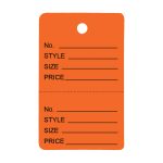 • UNSTRUNG TAG • TEXT-NO. STYLE, SIZE, AND PRICE • COLOR ORANGE • 1 7/8″ X 1 1/4″ SIZE • CASE OF 1000 TAGS