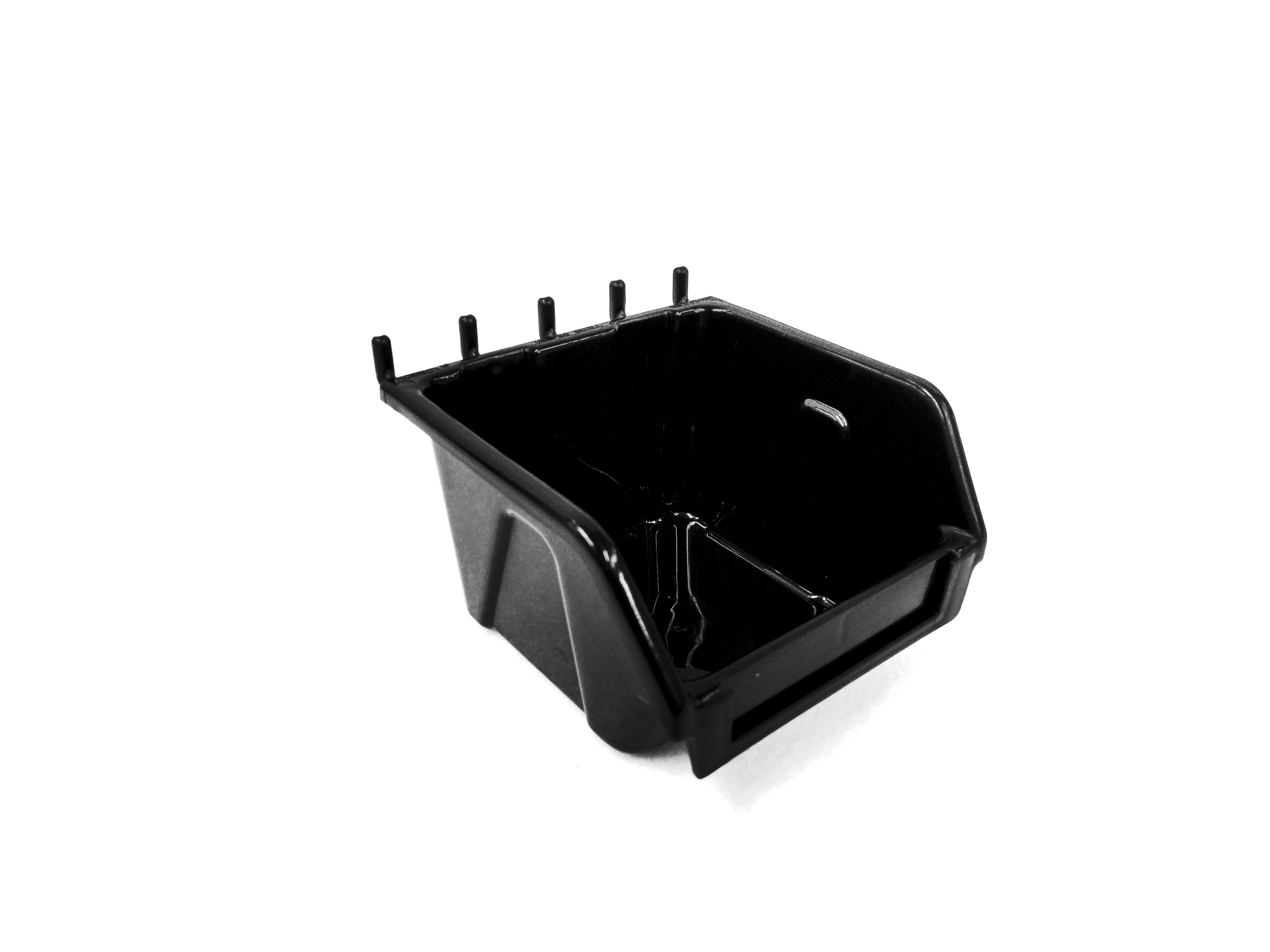 • SMALL PLASTIC SLATBOX • FOR USE WITH SLATWALL AND PEGBOARD • 4.29L x 4.49W x 2.95H • COLOR BLACK