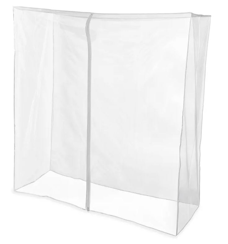 • HEAVY DUTY PLASTIC COVER • 8.8 GAUGE • INCLUDES TWO SUPPORT BARS CHROME • 63.5″W x 69.5″H x 22.5″D • COLOR CLEAR